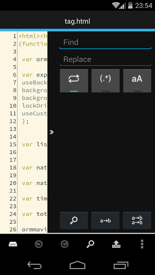 DroidEdit adalah teks dan source kode editor (mirip dengan Notepad++ atau gedit) untuk tablet android dan telepon dengan fitur berikut: